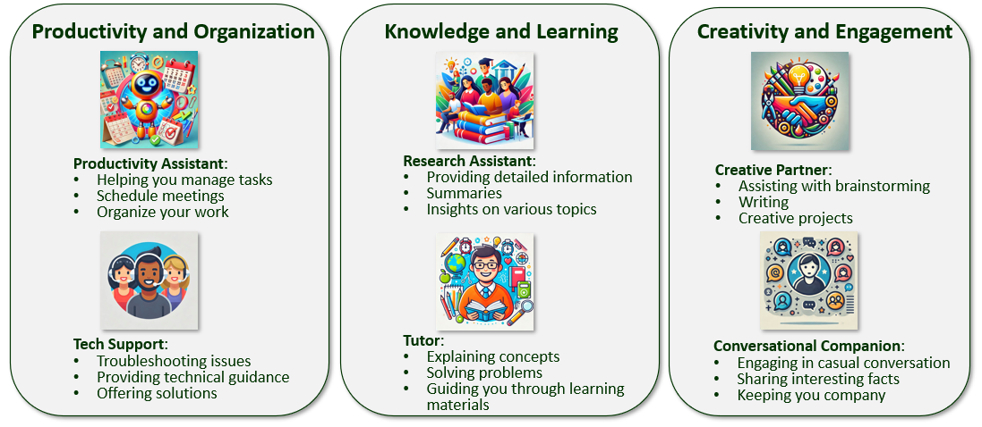 The tool can be leveraged to function in various personas. Note: all these images were created using Copilot.