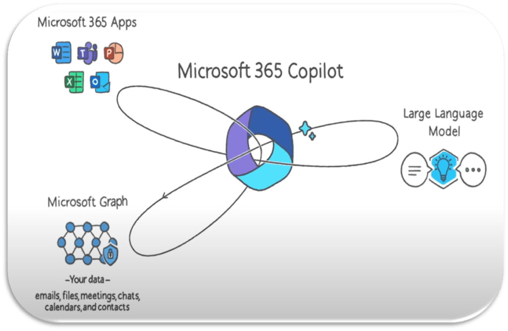 Microsoft Copilot is an AI-powered assistant integrated into Microsoft 365 apps like Word, Excel, PowerPoint, Outlook, and Teams. Think of it as an employee or coworker who always knows the answer, never takes sick days, and won’t judge your love for overly complicated Excel formulas.